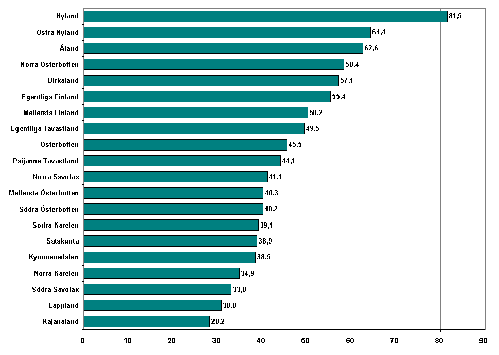 Hushållens inkomster har under tioårsperioden 1995-2004* ökat mest i Nyland. Den avtagande tillväxttakten i produktionen i början av 2000-talet samt minskade kapital- och optionsinkomster hade ingen större negativ inverkan på Nyland. Näst mest ökade hushållens inkomster i Östra Nyland, på Åland, i Norra Österbotten och i Birkaland. Täten vad gäller landskap förblir samma oberoende av om man jämför med primära inkomster som uppkommer av användning av produktionsfaktorer (arbete, egendom, företagande) eller disponibla inkomster som blir kvar efter omfördelning av inkomsterna (primära inkomster minus betalda skatter och socialskyddsavgifter plus erhållna i pengar betalda sociala förmåner).
