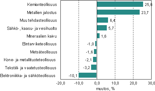 Teollisuustuotannon jalostusarvo kasvoi yli prosentin