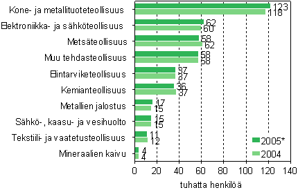 Henkilöstön määrä yhteensä teollisuudessa vuosina 2004 ja 2005* (lkm)
