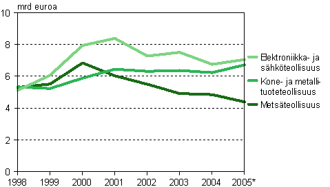 Jalostusarvon kehitys tehdasteollisuudessa vuosina 1998-2005*