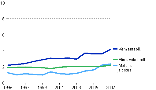 Lähde: Teollisuuden alue- ja toimialatilasto 2007. Tilastokeskus