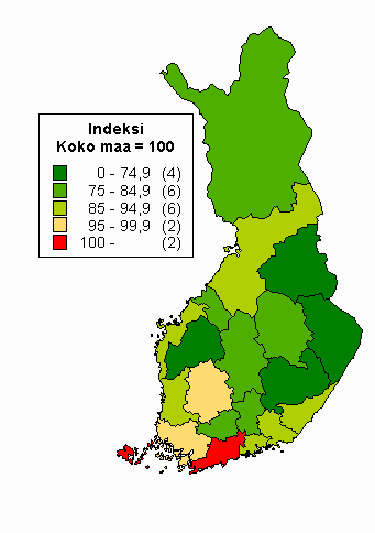 Lähde: Aluetilinpito 1975-2003*. Tuotannon ja työllisyyden aluetilit. Tilastokeskus