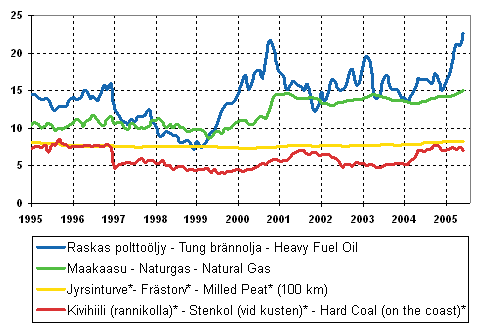 * Prices of hard coal and milled peat are not mutually