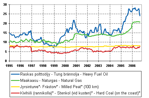 * Priserna på stenkol och frästorv är inte jämförbara