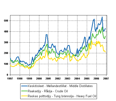Figure 07. Import Prices of Oil 1997-, €/t