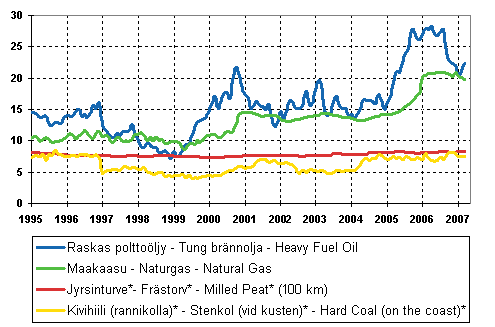 * Kivihiilen ja turpeen hinnat eivät ole keskenään vertailukelpoisia.
