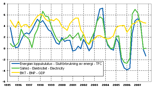 Figure 01. Changes in GDP, Final Energy Consumption and Electricity Consumption 1995-, %