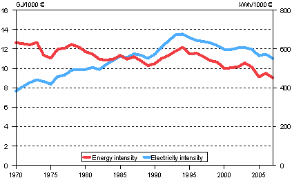 ISSN=1798-338X. 4th quarter 2007, Energy and Electricity Intensity 1970-2007 . Helsinki: Statistics Finland [referred: 20.11.2025].