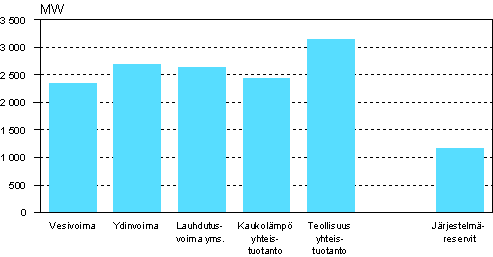 Kovien pakkasten ja huonon vesitilanteen aikana yhtä aikaa käytettävissä oleva nettoteho on 13 220 MW, joka pystytään tuottamaan tunnin ajan Suomessa.