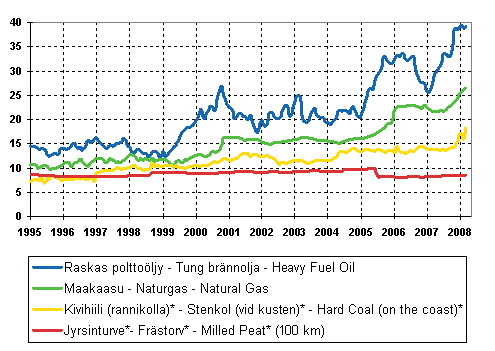 * Kivihiilen ja turpeen hinnat eivät ole keskenään vertailukelpoisia