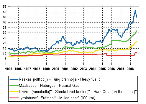 Figure 09. Fuel Prices in Heat Production 1995-, €/MWh