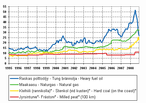 Figure 09. Fuel Prices in Heat Production 1995-, €/MWh