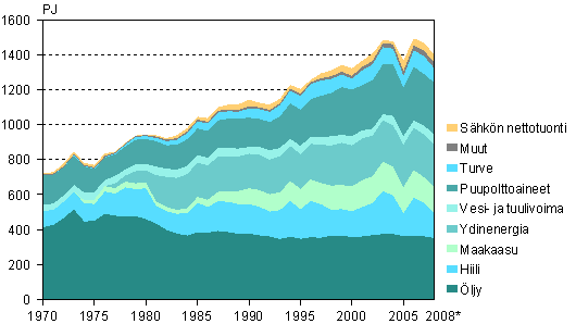 Ennakko 2008: Energian kokonaiskulutus 1970-2008