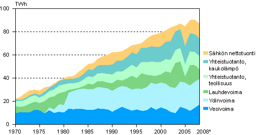 Ennakko 2008: Sähkön hankinta 1970-2008
