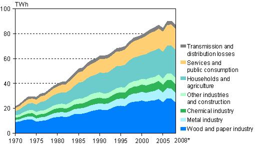 Electricity Consumption by Sector 1970-2008