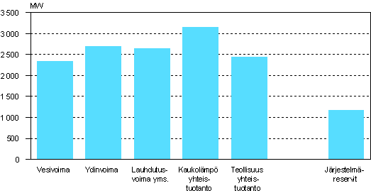 Kovien pakkasten ja huonon vesitilanteen aikana yhtä aikaa käytettävissä oleva nettoteho on 13 300 MW, joka pystytään tuottamaan tunnin ajan Suomessa.