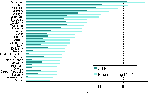 Renewable energy as a proportion of final energy consumption in 2006, and the target for 2020