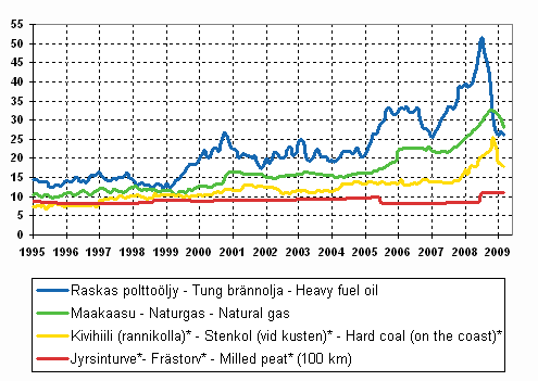 * Prices of hard coal and milled peat are not mutually comparable.