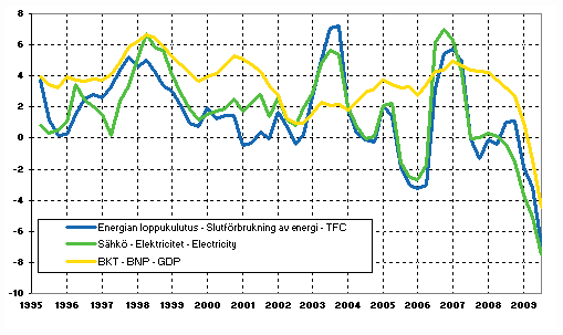 Figure 01. Changes in GDP, Final energy consumption and electricity consumption 1995-, %
