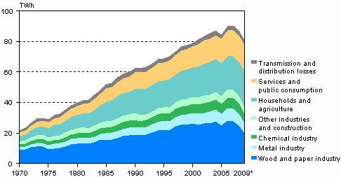 Electricity Consumption by Sector 1970-2009*