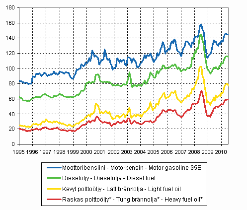 Figurbilaga 08. Konsumentpriser på de viktigaste oljeprodukterna 1995-, c/l