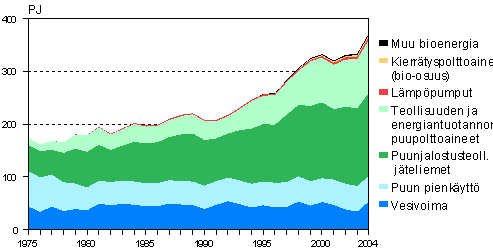 Uusiutuvan energian käyttö 1975-2004