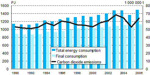 - Total energy consumption, final consumption and carbon dioxide emissions 1990-2006 (12.12.2007)