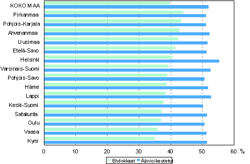 | Äänioikeutetut | 51,6 | 6,6 | 8,0 | 25,0 | 8,7 |