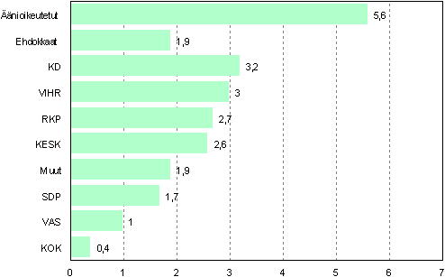 | Ehdokkaat | 71,7 | 7,0 | 7,6 | 10,4 | 3,3 |