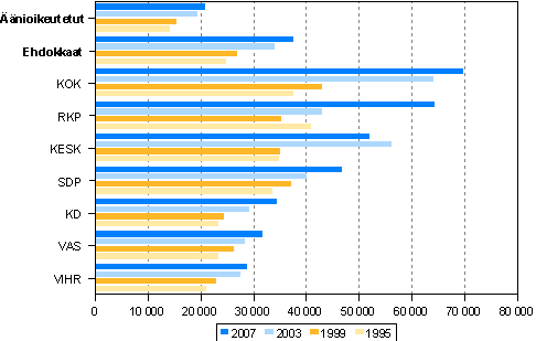 | Ehdokkaat | 37 749 | 34 197 | 27 186 | 25 066 | 50,6 | 110,4 |