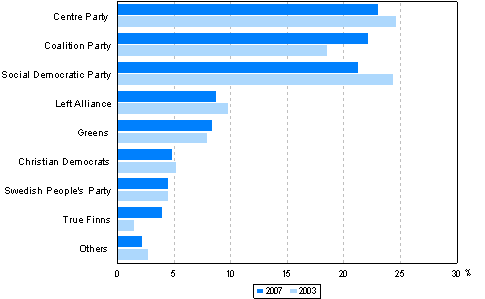 Source: Election Statistics, Parliamentary elections 2007. Statistics Finland