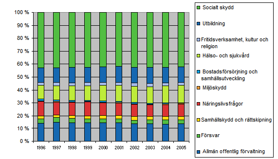 Den offentliga sektorns utgifter efter ändamål 1996-2005