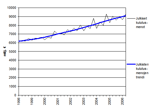 Kaikkien aikasarjojen kahden viimeisimmän vuoden tiedot ovat ennakollisia ja tarkentuvat kansantalouden tilinpidon vuositietojen tarkentuessa. Kuvioissa trendi on laskettu Tramo/Seats-menetelmällä. Trendi voi tarkentua tulevina periodeina, kun ennakolliset havainnot tarkentuvat. Vuositilinpidon aikasarjojen tarkentuessa tarkentuvat myös tämän tilaston aikasarjat. Tiedot perustuvat 27.09.2006 mennessä käytettävissä olleisiin tietoihin talouskehityksestä.