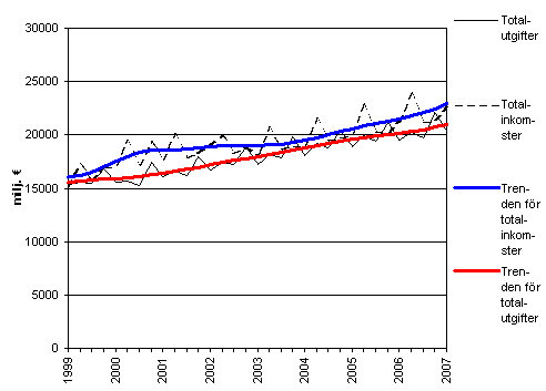Den offentliga sektorns totalinkomster och totalutgifter 1999-2007