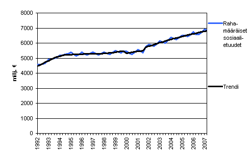 Julkisyhteisöjen maksamat rahamääräiset sosiaalietuudet (D62) neljännesvuosittain