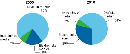 Efter millennieskiftet har de grafiska mediernas andel minskat med totalt 11 procentenheter, och de elektroniska mediernas andel har ökat lika mycket.
