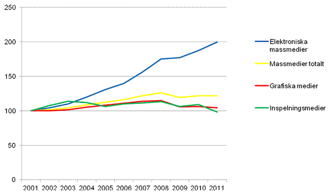 Utveckling av massmediemarknaden, 2001=100