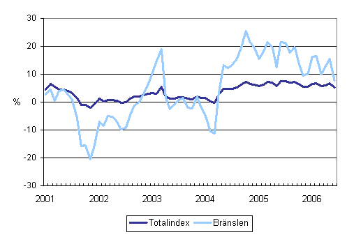 Årsförändringar av alla kostnader för lastbilstrafiken och bränslekostnader 1/2001 - 6/2006