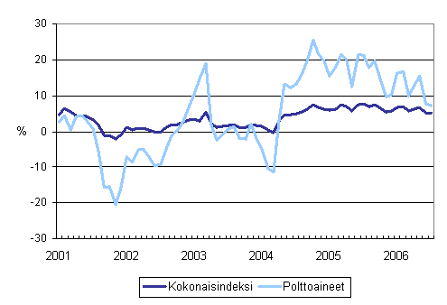 Kuorma-autoliikenteen kaikkien kustannusten ja polttoainekustannusten vuosimuutokset 1/2001 - 7/2006