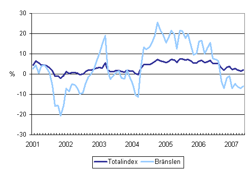 Årsförändringar av alla kostnader för lastbilstrafiken och bränslekostnader 1/2001 - 5/2007