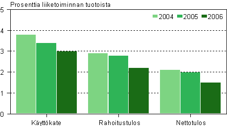 Autokaupan liikevaihto jatkoi kasvua 2006 ennakkotietojen mukaan ollen lähes 20,8 miljardia euroa. Samalla autokaupan kannattavuusluvut heikkenivät kasvun kustannuksella. Kaikki kannattavuusluvut laskivat. Käyttökateprosentti laski 0,4 prosenttiyksikköä kolmeen prosenttiin. Kasvun myötä liiketoiminnan marginaaleista on jouduttu tinkimään, koska ostot kasvoivat liikevaihtoa voimakkaammin. Lisäksi rahoituskulut kasvoivat -tuottoja voimakkaammin, jolloin rahoitustulos laski 2,2 prosenttiin. Nettotulos oli ennakkotietojen mukaan 1,5 prosenttia.