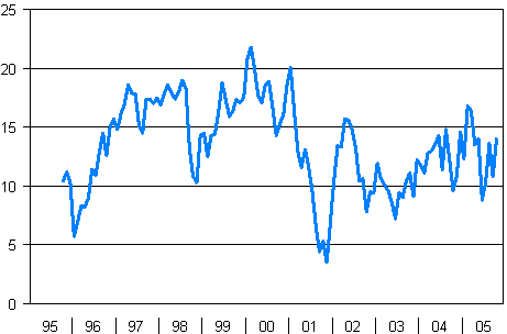 Konsumenternas förtroendeindikator 10/1995-10/2005