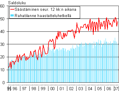 A2 Kuluttajien arviot kotitaloutensa säästämismahdollisuuksista seuraavan 12 kk aikana ja rahatilanteesta haastatteluhetkellä 10/1995-05/2007