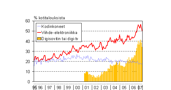 A3 Kotitalouksien aikomukset käyttää rahaa kodintekniikan hankintaan seuraavan puolen vuoden aikana 10/1995-05/2007