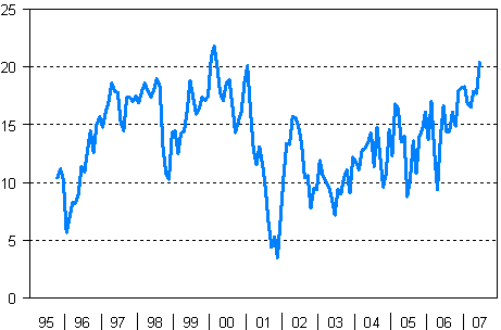Konsumenternas förtroendeindikator 10/1995-6/2007