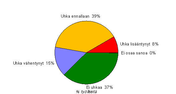 A6 Työllisten arvio työttömyyden uhan muutoksesta omalla kohdallaan viimeisten 12 kuukauden aikana, elokuu 2007