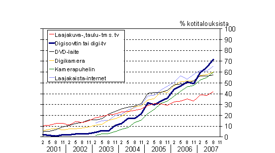 C 6 Uuden viihde-elektroniikan yleistyminen kotitalouksissa 2/2001-8/2007