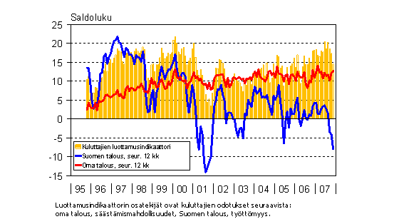 A0 Kuluttajien odotukset taloudesta ja kuluttajien luottamusindikaattori 10/1995 - 11/2007