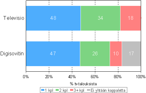 C10 Tv-talouksien jakautuminen television ja digisovittimen lukumäärän mukaan, marraskuu 2007