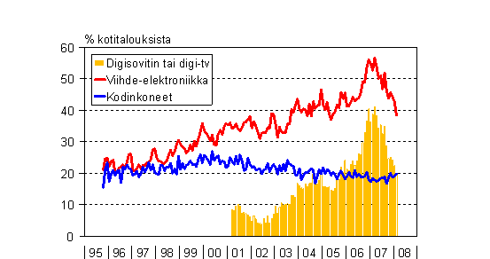 A3 Kotitalouksien aikomukset käyttää rahaa kodintekniikan hankintaan seuraavan puolen vuoden aikana 10/1995 - 2/2008